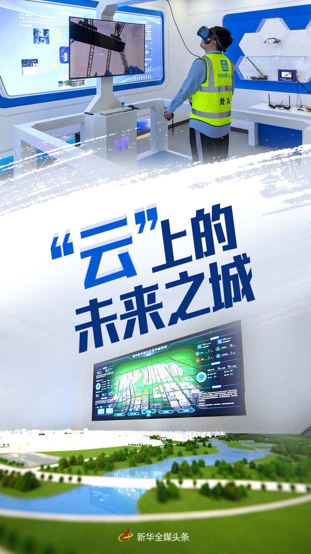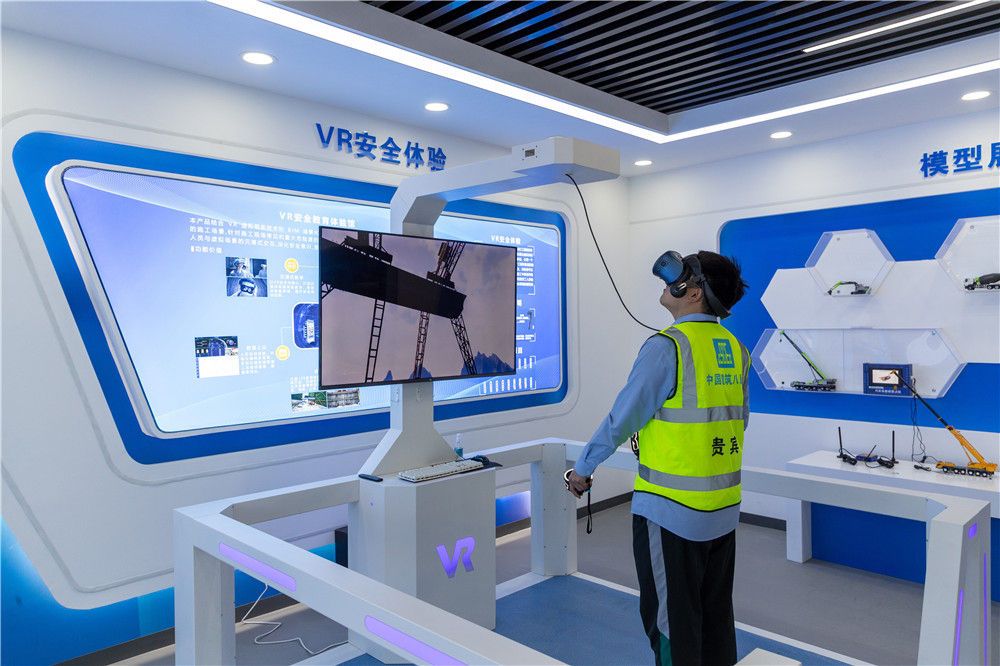 工作人员在雄安新区一智慧工地展示厅进行工地VR安全体验(2022年4月13日摄)。新华社发(高盟 摄)