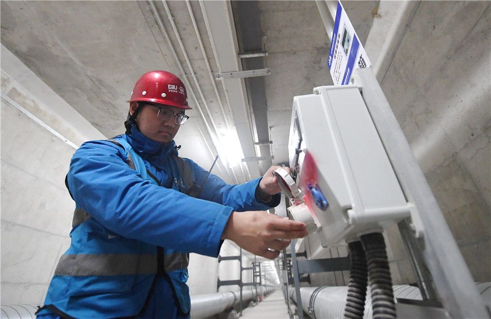 工作人员在雄安新区容东片区地下管廊调试物联网设备(2022年3月30日摄)。新华社记者 朱旭东 摄