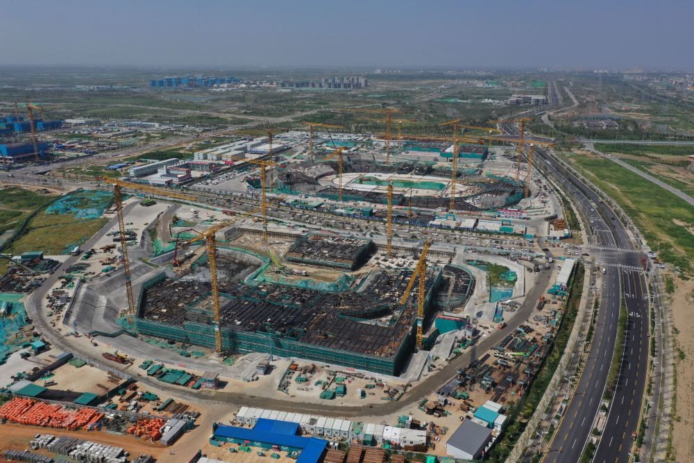 ↑雄安体育中心项目建设现场(9月1日摄,无人机照片)。新华社记者 朱旭东 摄