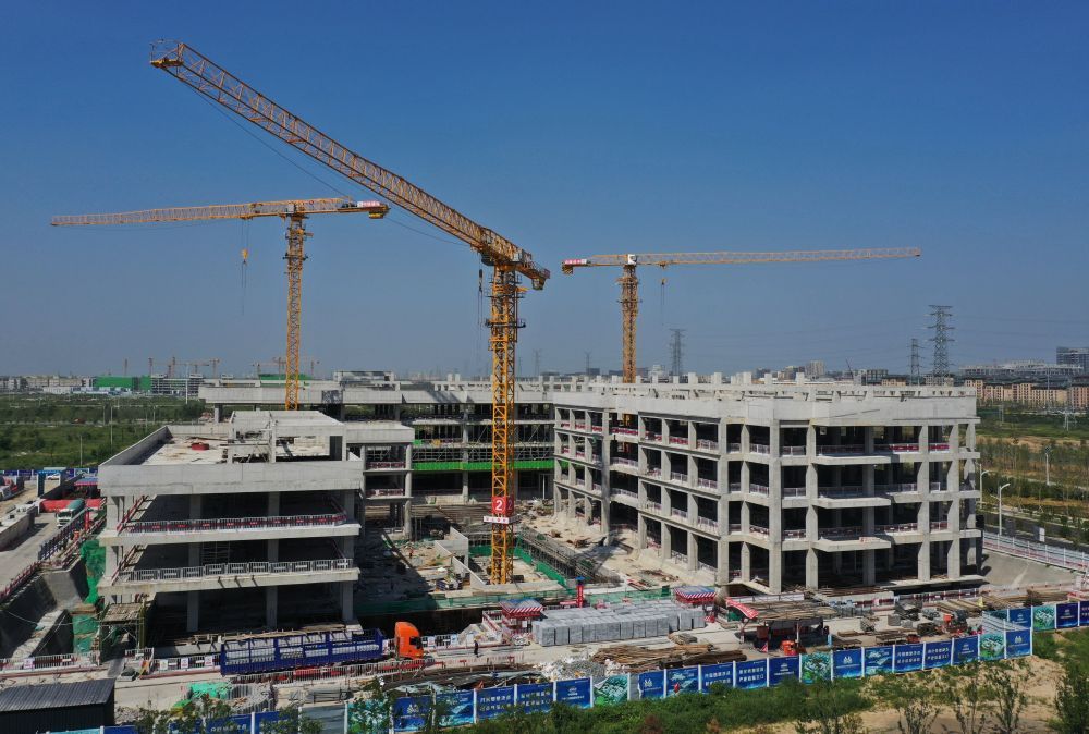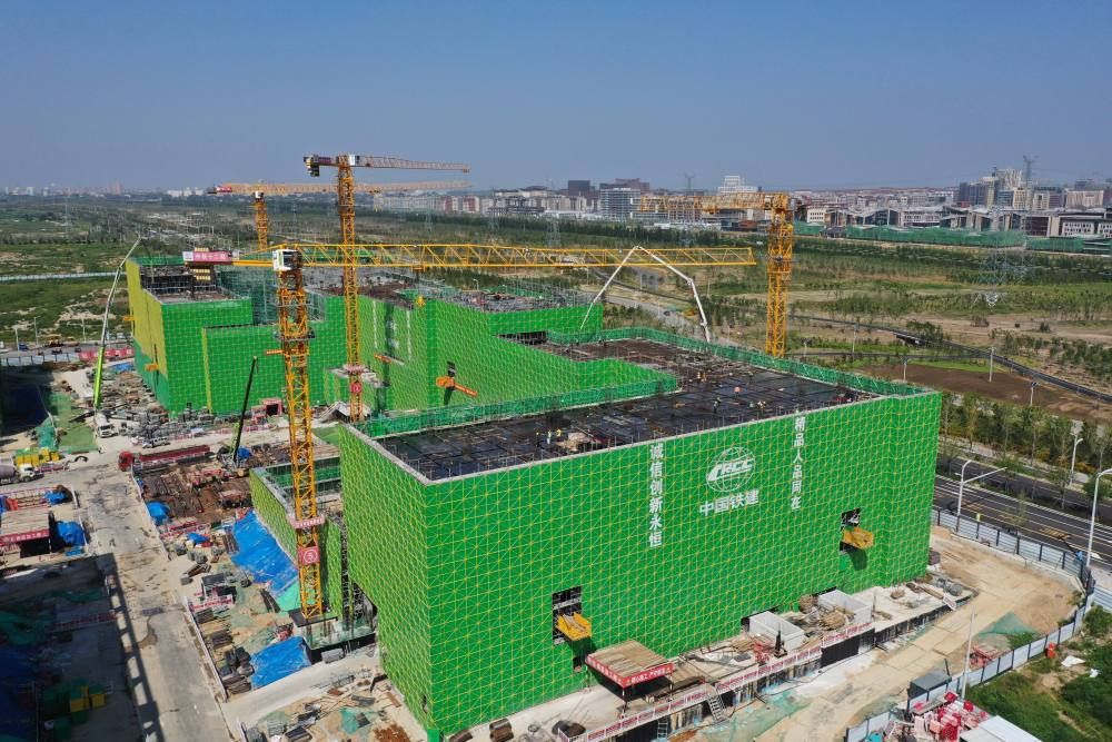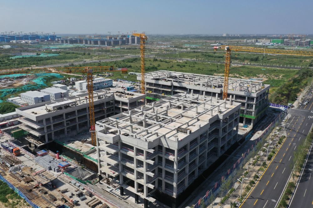 ↑雄安科创综合服务中心(一期)项目建设现场(9月1日摄,无人机照片)。新华社记者 朱旭东 摄