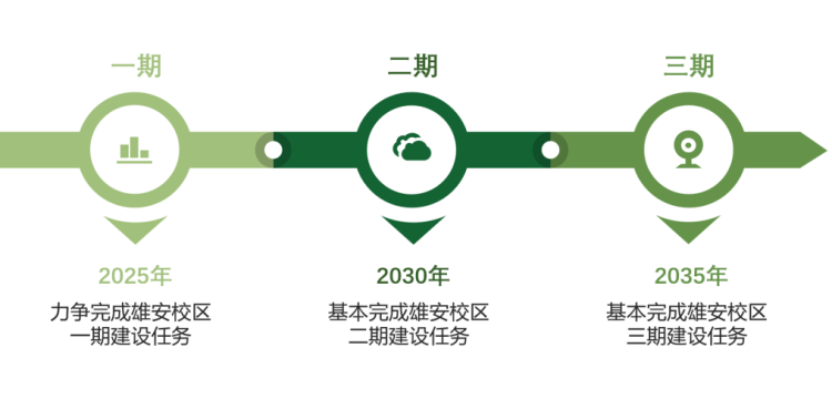根据规划,新校区一期建设预计2025年完成,到2035年基本完成三期建设。新校区将打造具有中华文化底蕴和浓厚学术氛围,典雅实用、舒适安全、节能环保、校城融合、富有弹性的绿色生态校园。