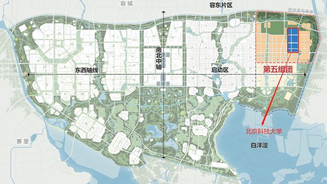 北京科技大学雄安校区位于雄安新区起步区第五组团北部,占地面积约2450亩。