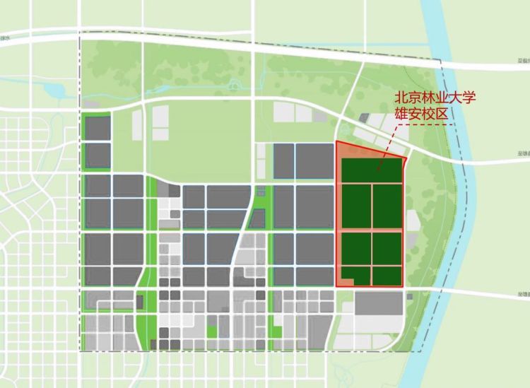 北京林业大学雄安校区位于雄安新区启动区和起步区第五组团东北部,占地面积约2200亩,距离北京校区直线距离约110公里。