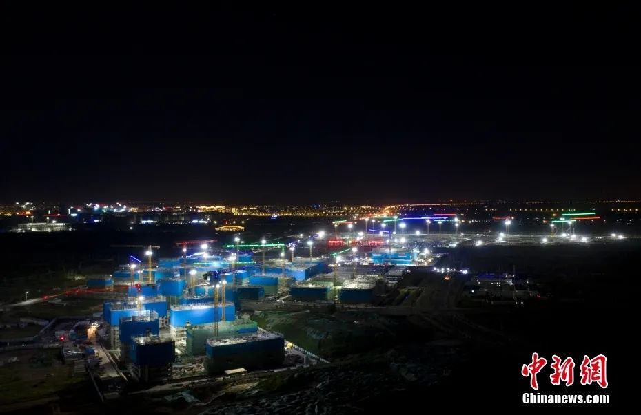 资料图为9月7日,航拍雄安新区启动区夜间施工现场。(无人机照片) 中新社记者韩冰摄
