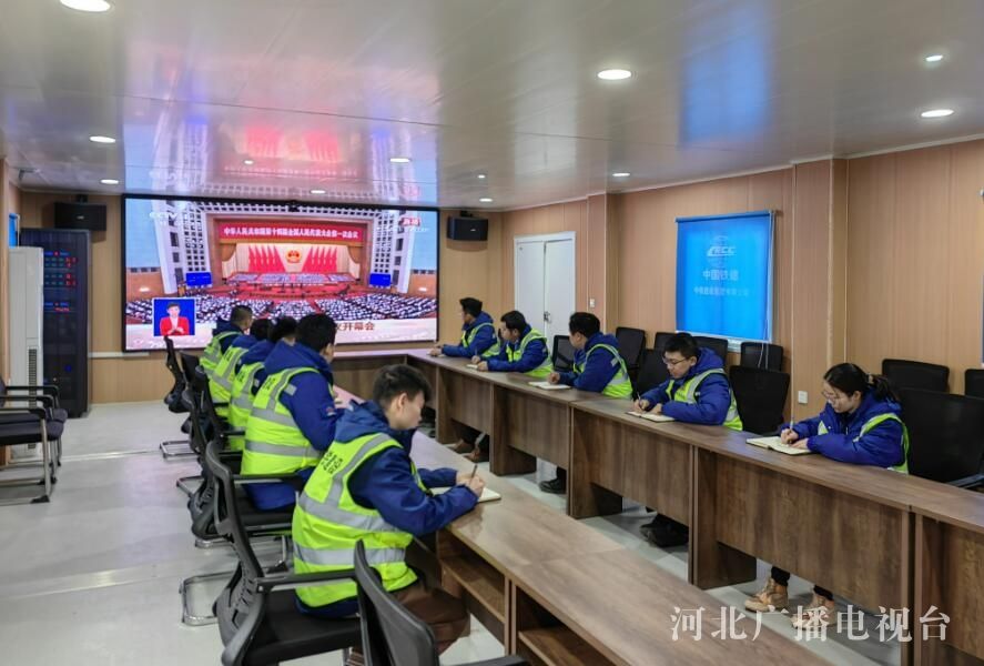 雄安新区中铁建项目施工团队收看十四届全国人大一次会议开幕会。