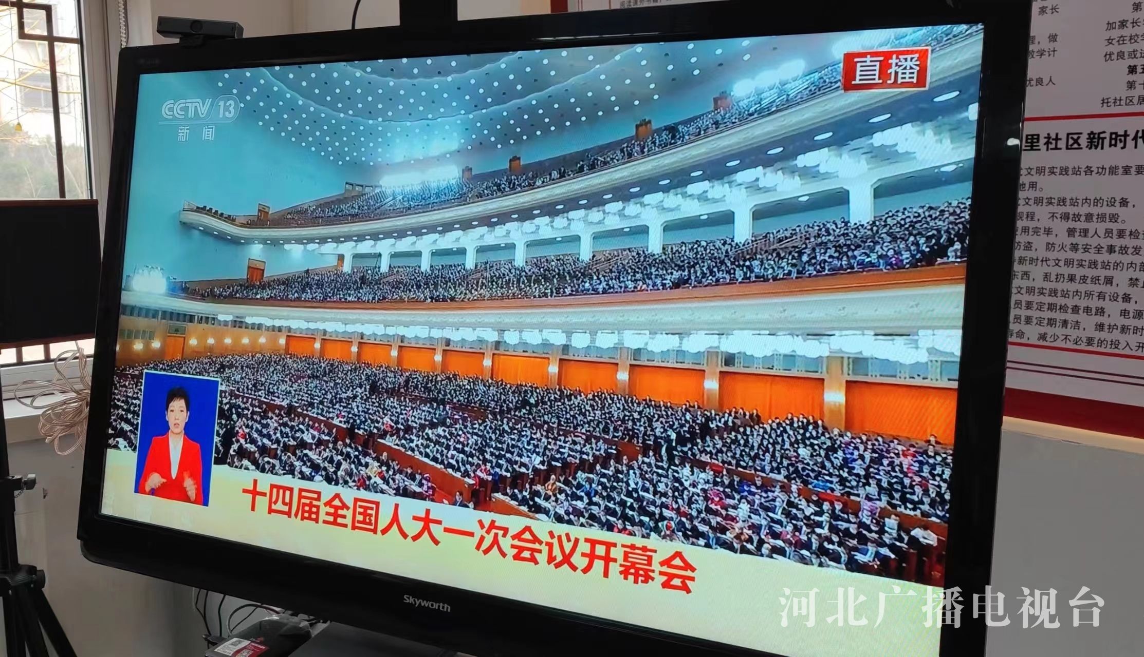 今天上午,唐山市路北区祥富里社区干部群众集中收看十四届全国人大一次会议开幕会。(河北台 张存海)