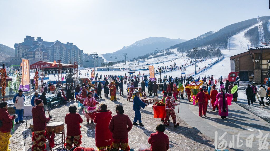 1月30日,在张家口市崇礼区太舞小镇,游客观看民俗表演。李登云摄