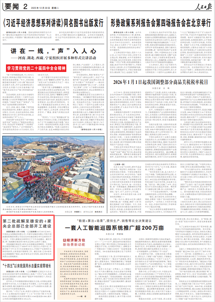 首批疏解至雄安的4家央企总部建设进展顺利。中国星网总部及所属企业已于2024年10月入驻办公;中国中化、中国华能于今年10月9日迁驻雄安办公;中国矿产总部项目主体结构封顶,正抓紧进行装修等工作。截至目前,已有8家央企总部疏解落户雄安,400多家央企分支机构、4000多家北京来源企业落地雄安。