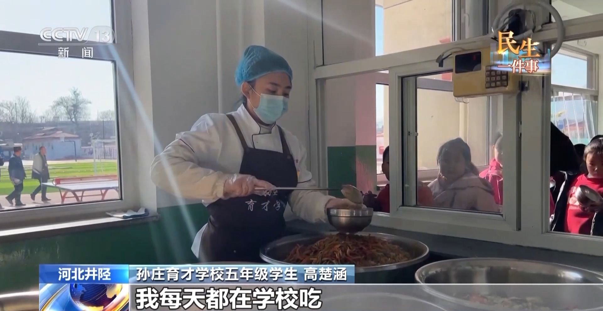 学生家长 高路燕:我儿子说比以前饭菜更好吃了。营养更均衡,肉、菜更丰富了。