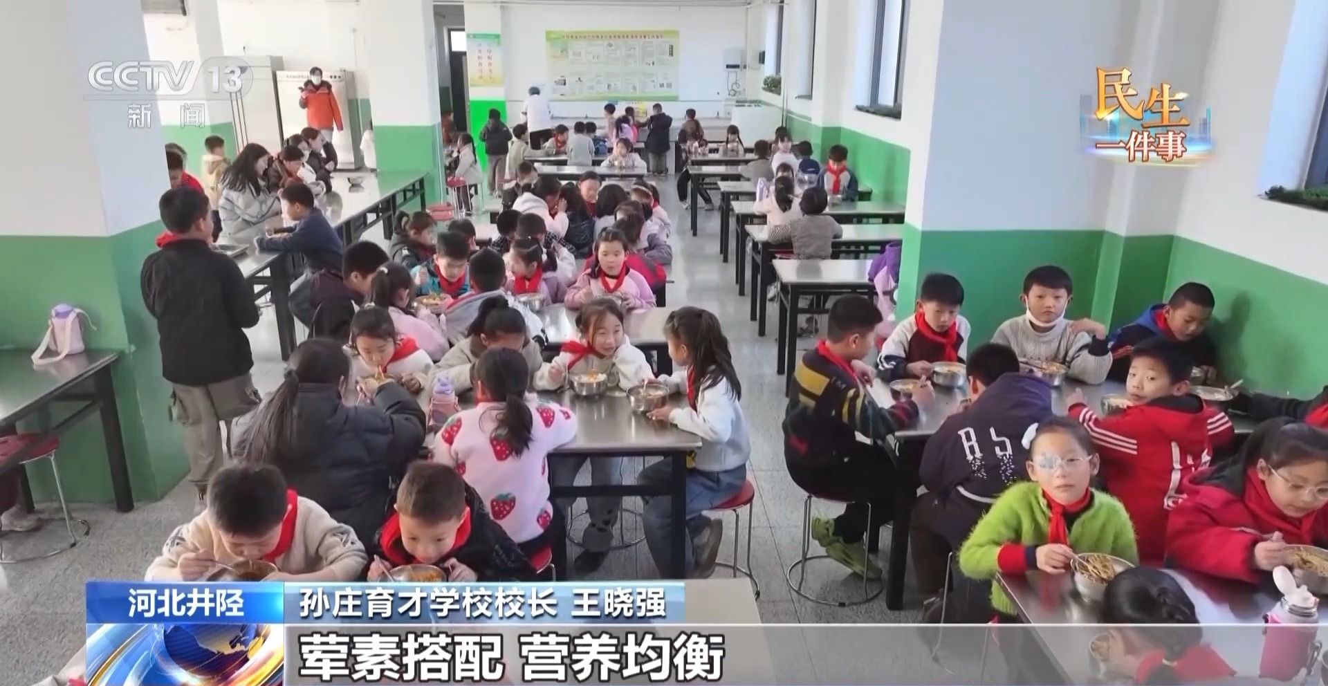 孙庄育才学校校长 王晓强:基本做到了“日进日清”、荤素搭配的营养均衡,孩子们吃得饱、吃得好。