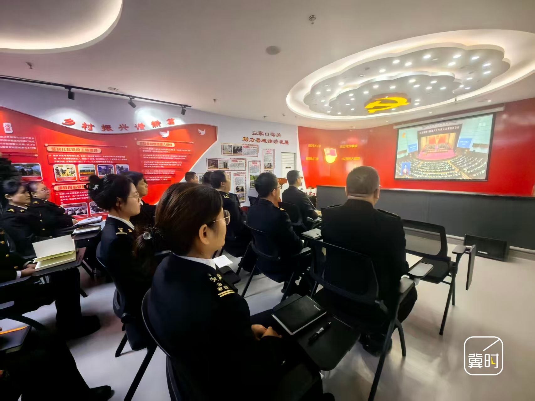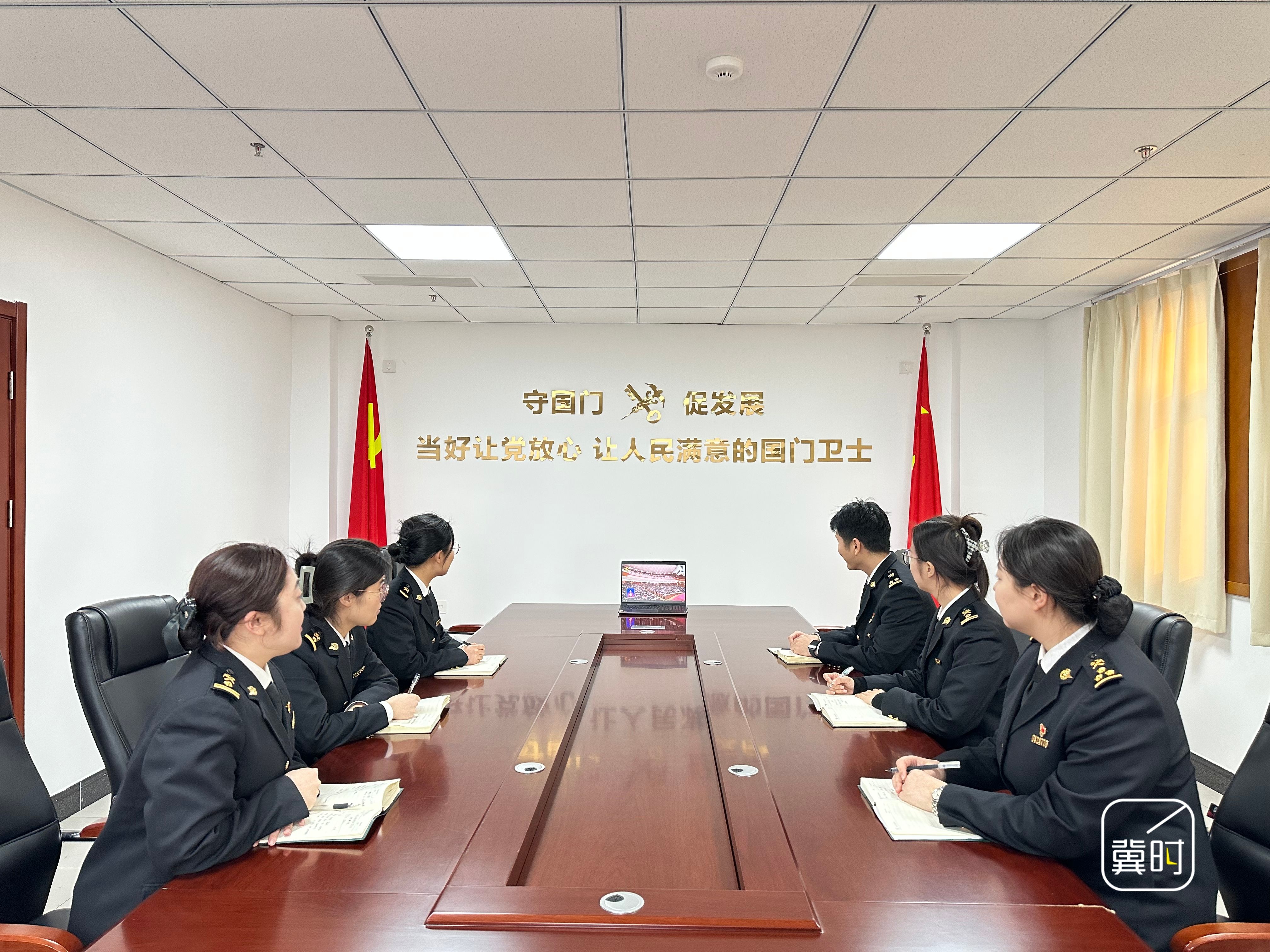 张家口海关全体关员收看省十四届人大四次会议开幕会直播,认真聆听《政府工作报告》。(河北台 张龙 郭礼超)