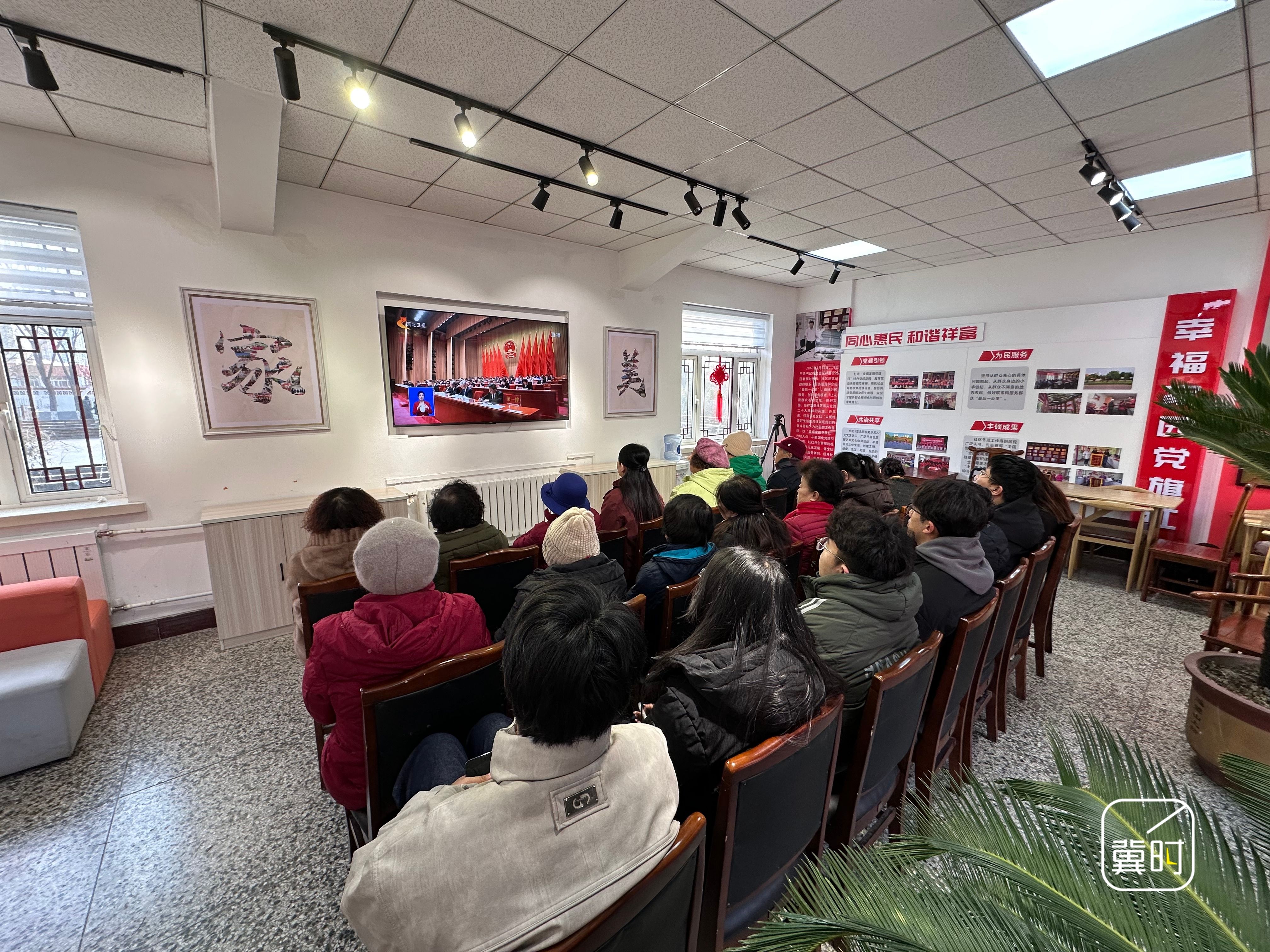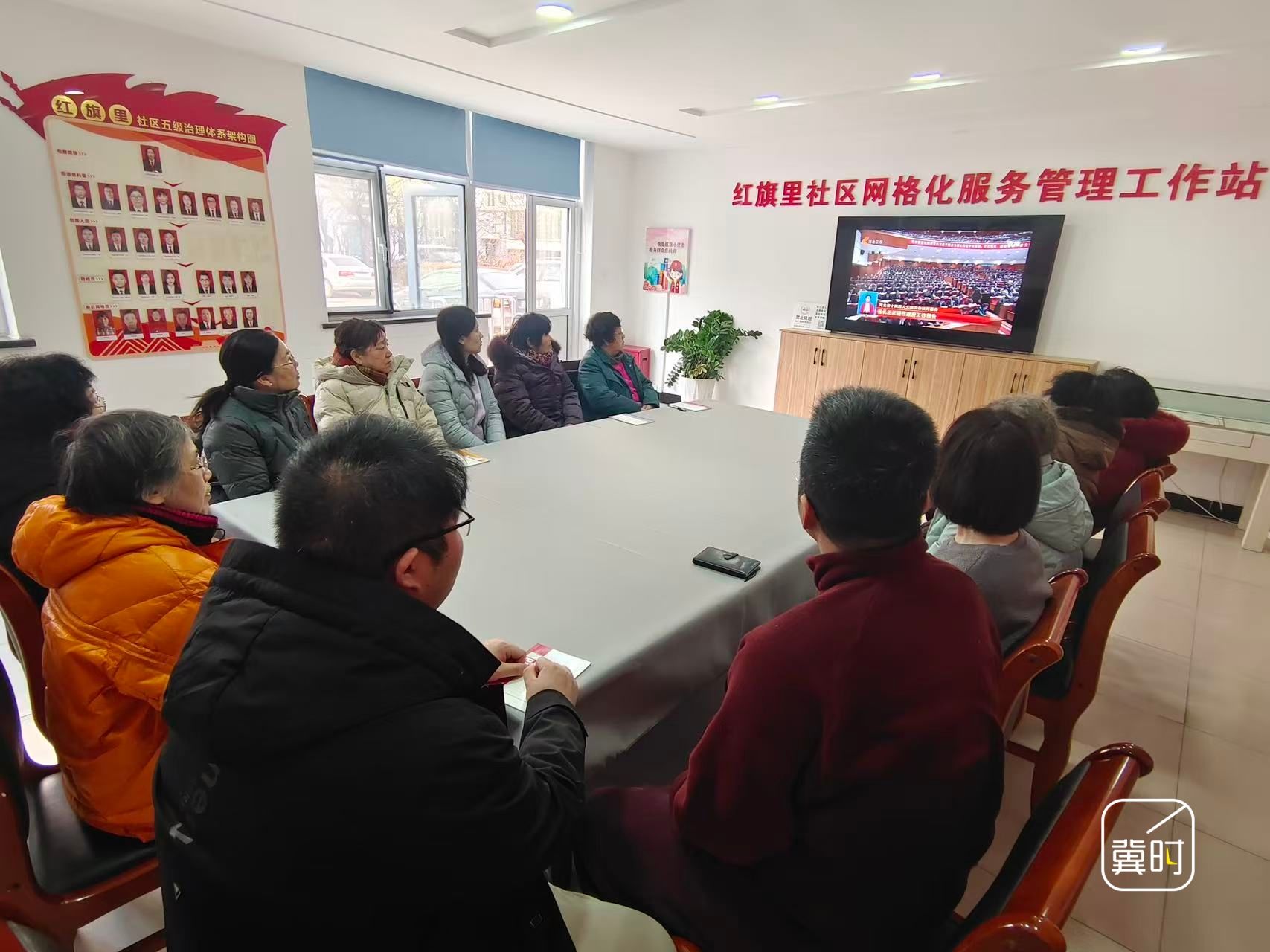 秦皇岛市海港区文化路街道红旗里社区组织社区工作者和居民一起收听收看省十四届人大四次会议开幕会,认真聆听《政府工作报告》。(河北台 张志刚 米弘钊 赵永鑫 李泽群)