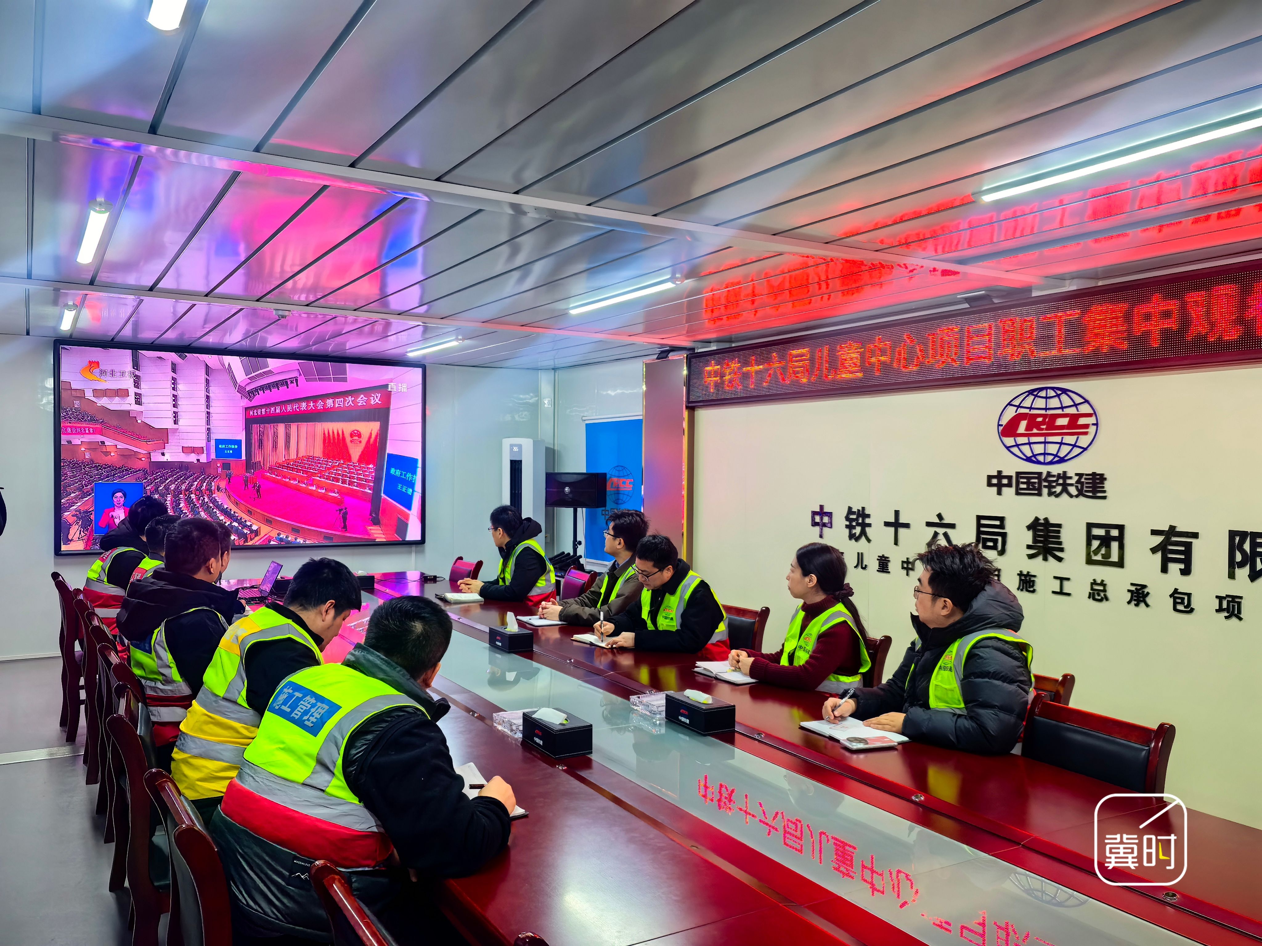 在雄安新区启动区,来自中铁十六局雄安儿童中心项目的建设者们,集中收听收看省十四届人大四次会议开幕会直播。(河北台 刘锦渤 赵佳伟)