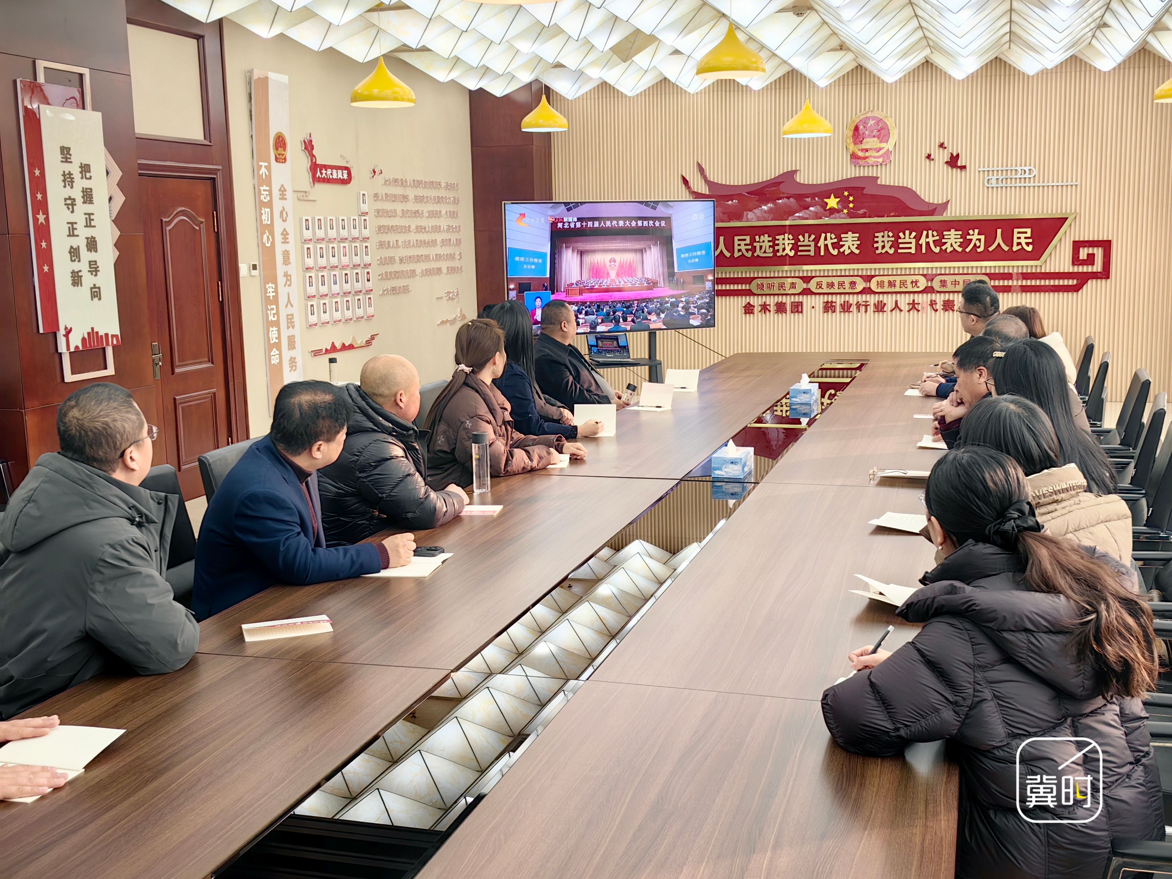 保定市安国市组织部分人大代表和行业家站成员收听收看省十四届人大四次会议开幕会直播,认真聆听《政府工作报告》。(河北台 常琛)