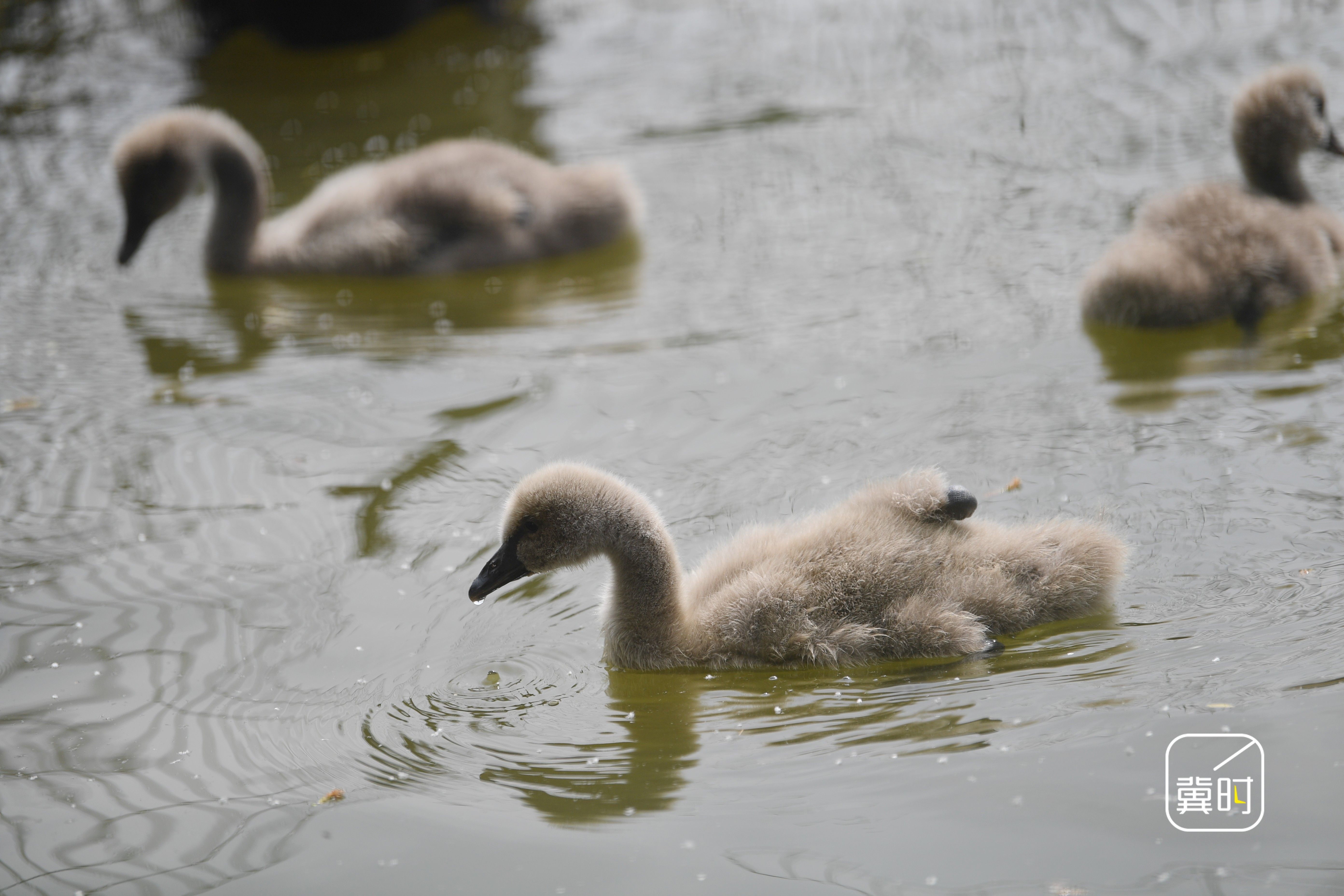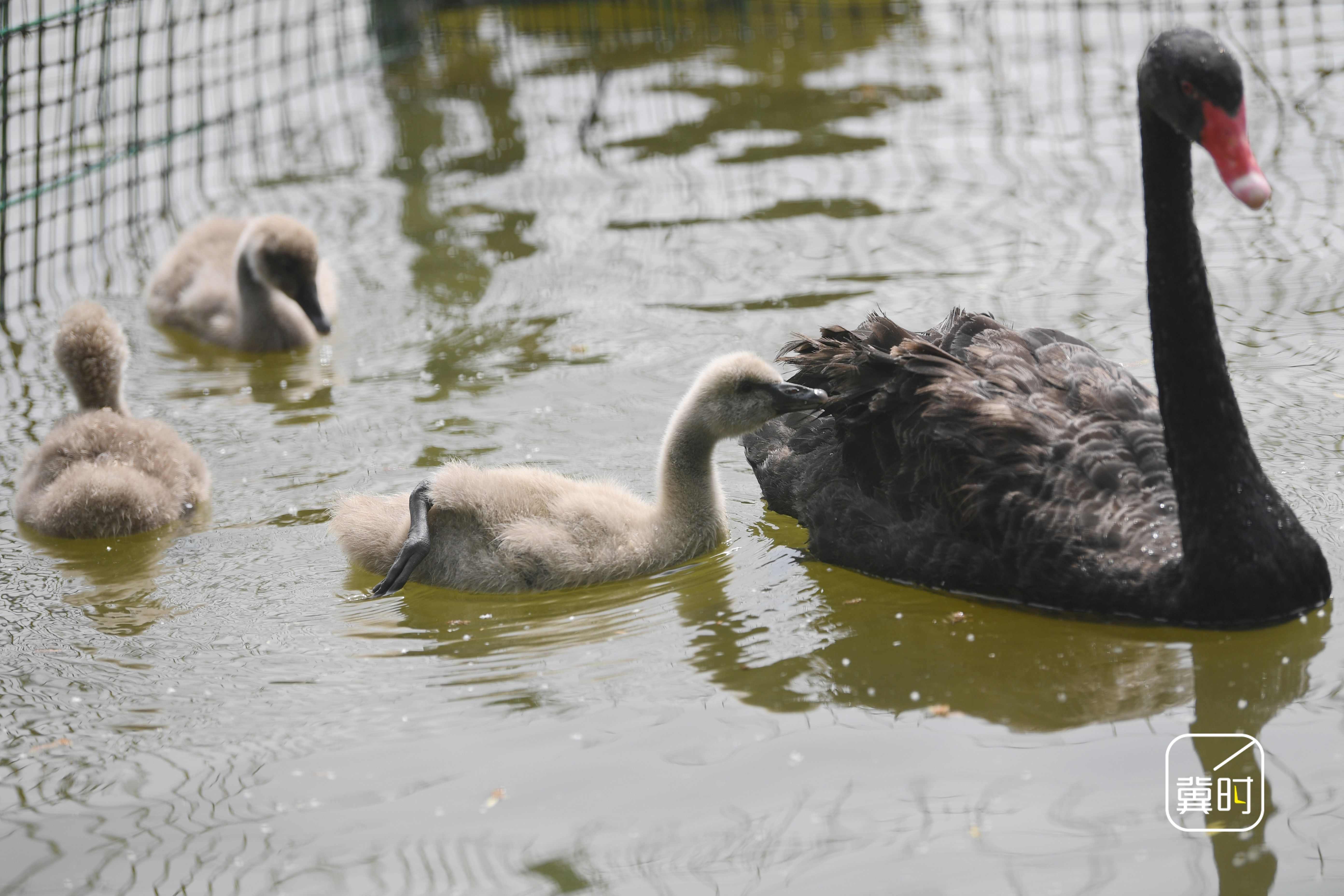 冀时新闻报道(拍客 程学虎)4月27日,河北省邯郸市广平县天鹅湖公园内,新出生的天鹅宝宝披着灰白色绒毛,如一团团“糯米糍”般在湖面上摇摇晃晃地游动,时而追逐成年天鹅嬉戏,时而划动稚嫩脚丫拨动清波。春光与湖影交织,天鹅一家悠然穿梭于垂柳碧水间,吸引了不少市民驻足观赏、拍照打卡,为“五一”假期的到来提前增添了一抹灵动的生态美景。