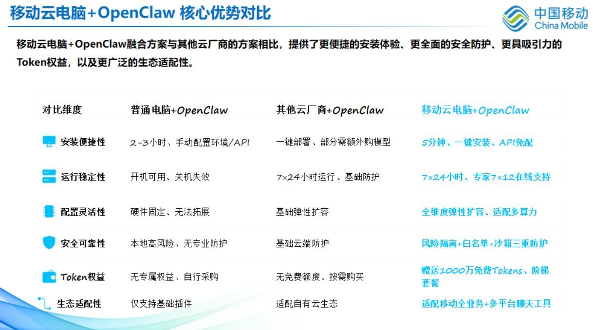 移动云电脑+OpenClaw核心优势对比