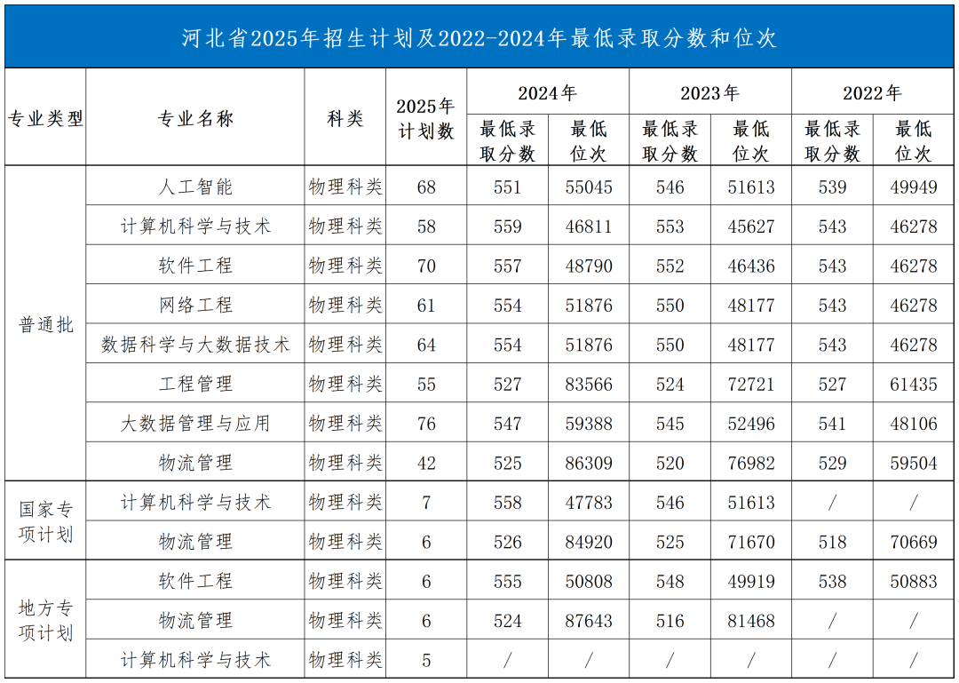 河北省2025年招生计划及2022-2024年录取情况