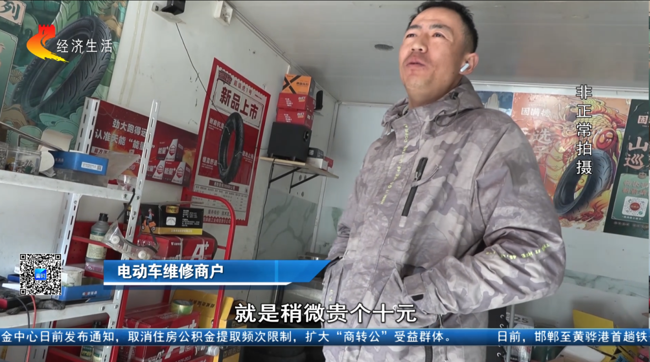 电动车维修商户:(电池)目前没有说给我们涨多少,就是贵个十元,便宜个十元,基本上大差不差的。