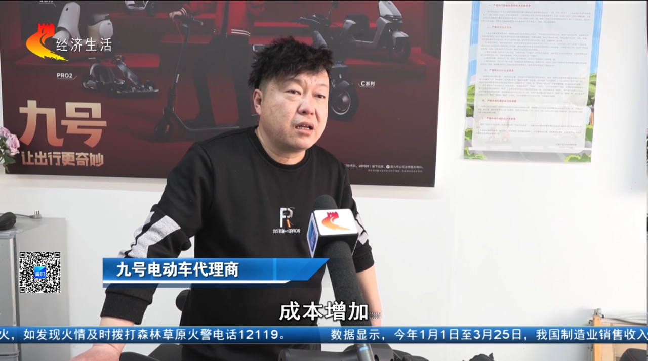 九号电动车代理商:成本增加,每台车可能要涨个100到200元。从四月一日开始,四月一日执行。