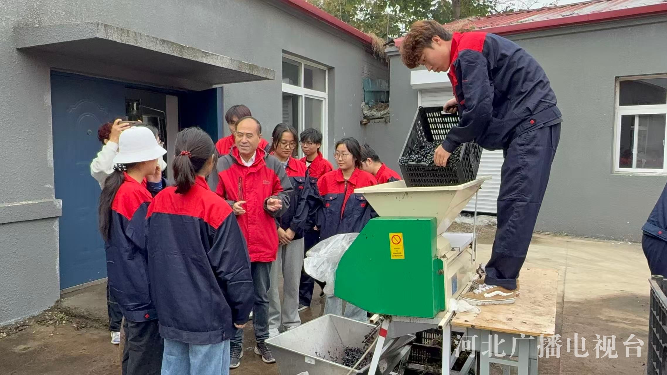 冀时客户端报道(河北台 张志刚 米弘钊 赵永鑫 李泽群)10月19日,在河北科技师范学院630平方米的葡萄酒实训中心内,一串串饱满的酿酒葡萄正通过除梗破碎机完成预处理,学生们围在一位经验丰富的行业专家身旁,认真记录着葡萄入罐发酵的关键参数。这位专家正是朗格斯酒庄总经理、葡萄酒行业著名酿酒大师崔彦志先生。