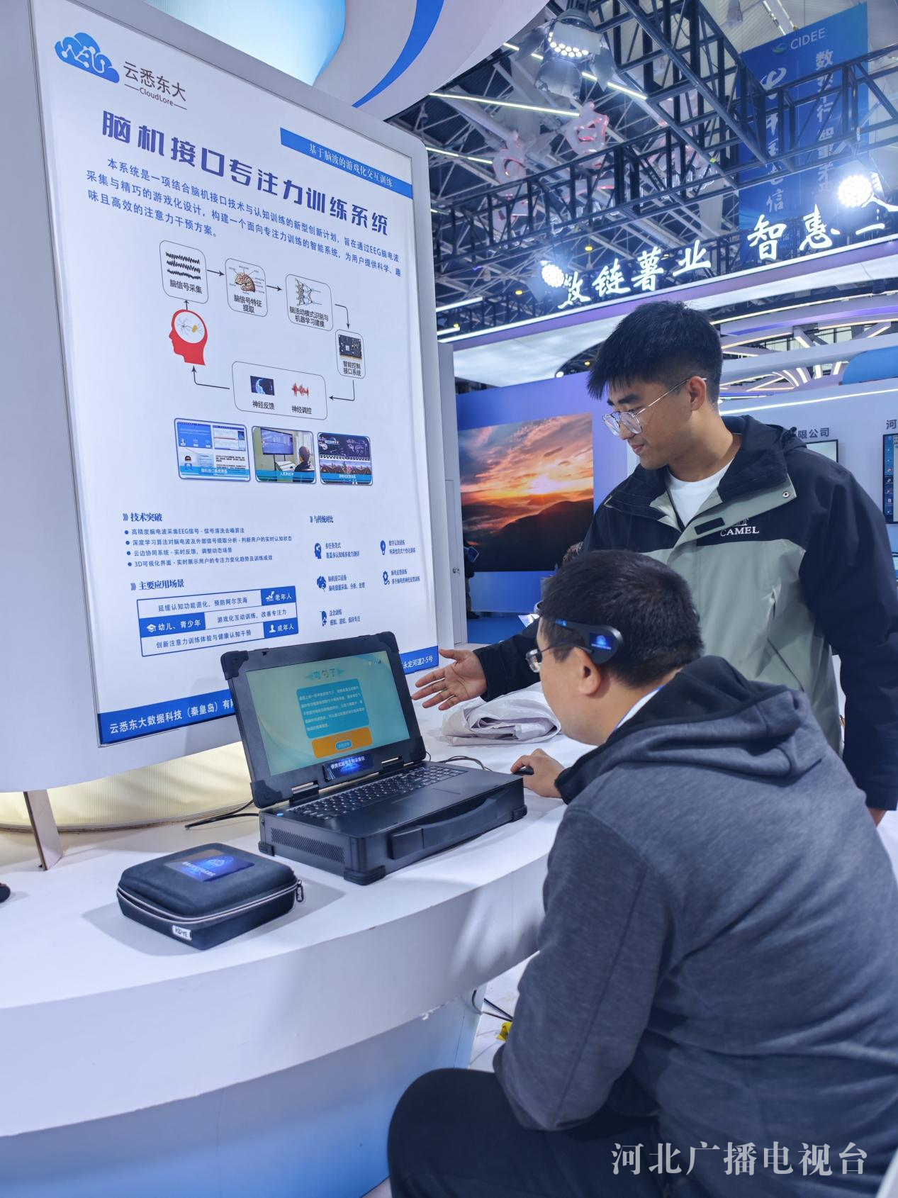 更前沿的探索,已经在赋能人类自身的领域展开。像隔空控物,这个科幻片当中的“超能力”,如今已经是脑机接口技术正在实现的典型功能。在不久前结束的2025中国国际数字经济博览会上,云悉东大数据科技(秦皇岛)有限公司带着全新研发的脑机接口专注力训练系统亮相。