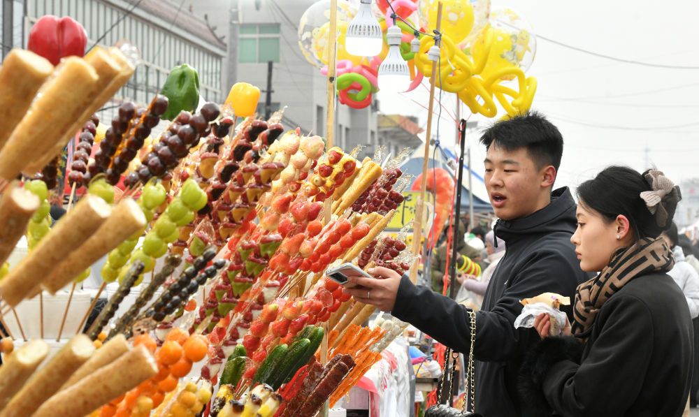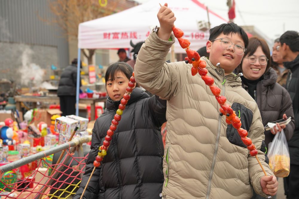 “酸甜可口的山楂裹上糖衣,这是童年的味道。”北京游客孙晓雯说,“小时候经常逛大集,那种童趣和乡土气息在大城市很难找到了。我专门赶来参加‘糖墩会’,就是为了体验这种热闹的氛围。”