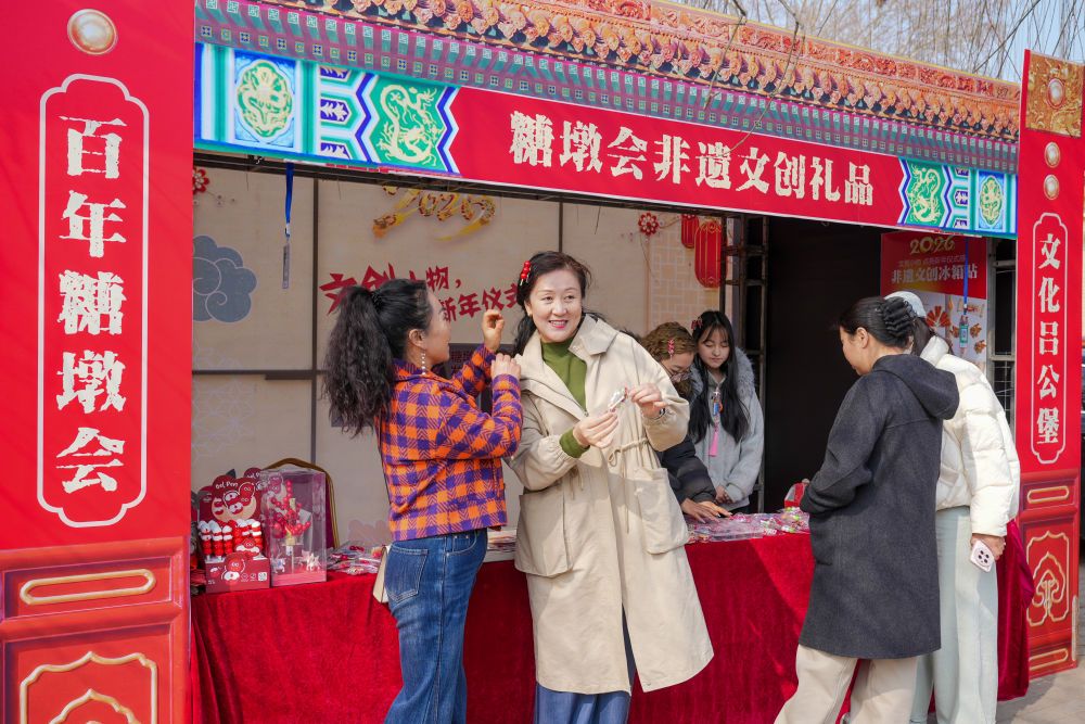 外地游客在“糖墩会”上体验文创产品。新华社发 韩慧峰 摄